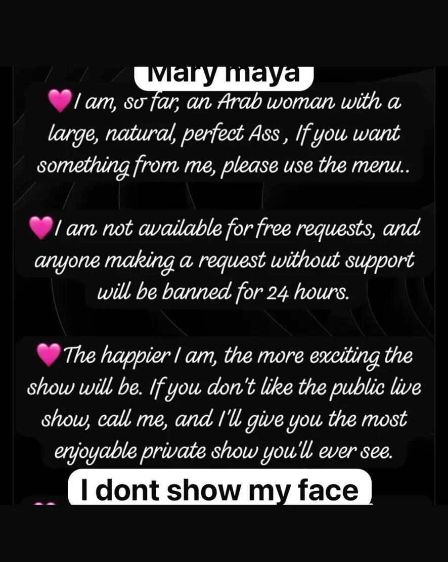 إهانة, العادة السرية, تصبيع, تعري, تقييم الزبر, توسُّل, جلد, رقص التويرك, رقص مثير, صدر عارٍ, إيلاج القبضة, اختراق مزدوج, خلفي, راعية بقر, رقص التعري, فاضح جدًا, فشخ, دش, ديوث, عرض زيت, كلام بذئ, لعب الأدوار, مداعبة يدوية, مص, وضعية الكلب
